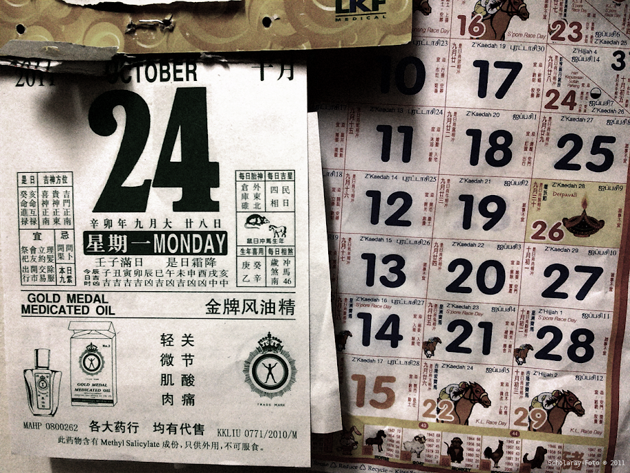 身為家中的交替掌門人,我接替了撕日曆的工作。霎那間,我就只是突然發現,原來日曆已經撕剩60多張。換句話說,還有兩個月的時間,就是2011的結束,2012的到來。然後,又是咚咚鏘的新一年,大家又再恭喜,發財,然後,回歸平靜。